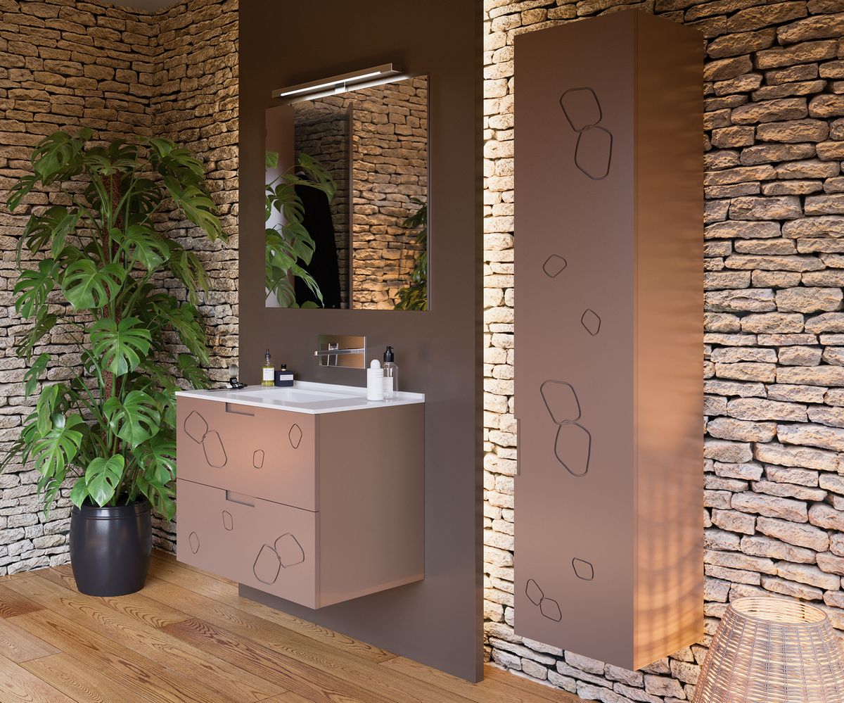 Le meuble vasque Liberté est composé de façades en solid surface entièrement personnalisables. Son graphisme simple et minimaliste s'intégrera parfaitement à une ambiance douce et feutrée. Faites votre choix parmi une gamme de cinq coloris de solid surface et quatre motifs bi-matière ou gravés.